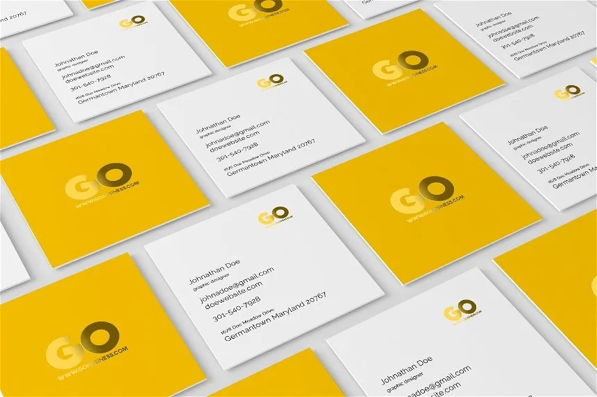 Square Business Card Mockup in 3 Different Views