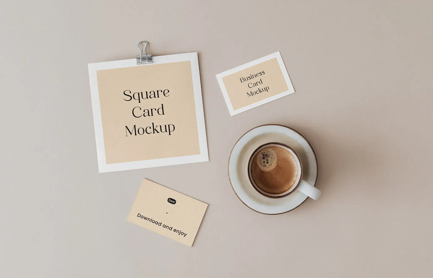 Put your design on a new high level and daze all audiences with your art in a more realistic yet artistic way on this chic modern paper card mockup. If you’ve expressed a mind-blowing sweet quote, created graceful invitations, or even enhance your brand ID, use this to draw attention. This asset appears with a unique coffee cup to prove its leading true image.