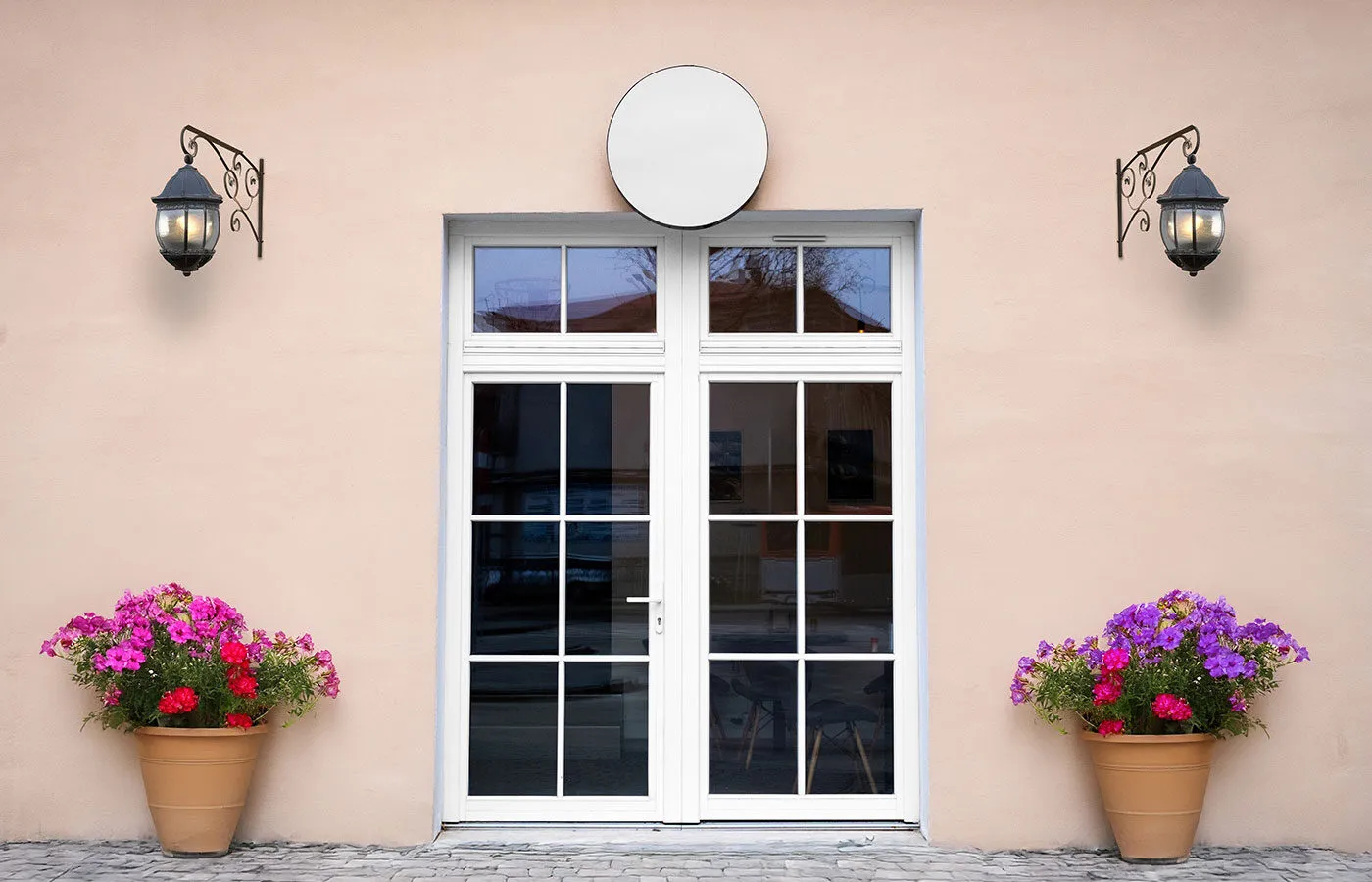 Create a strong street presence for your business with the Storefront with Sign Mockup. This detailed PSD file highlights an elegant shop exterior featuring a prominent rounded sign and large display windows, allowing you to present your branding in a realistic setting. You can easily apply your logo, signage, and window graphics using smart object layers for a seamless integration that captures authentic architectural details and lighting.