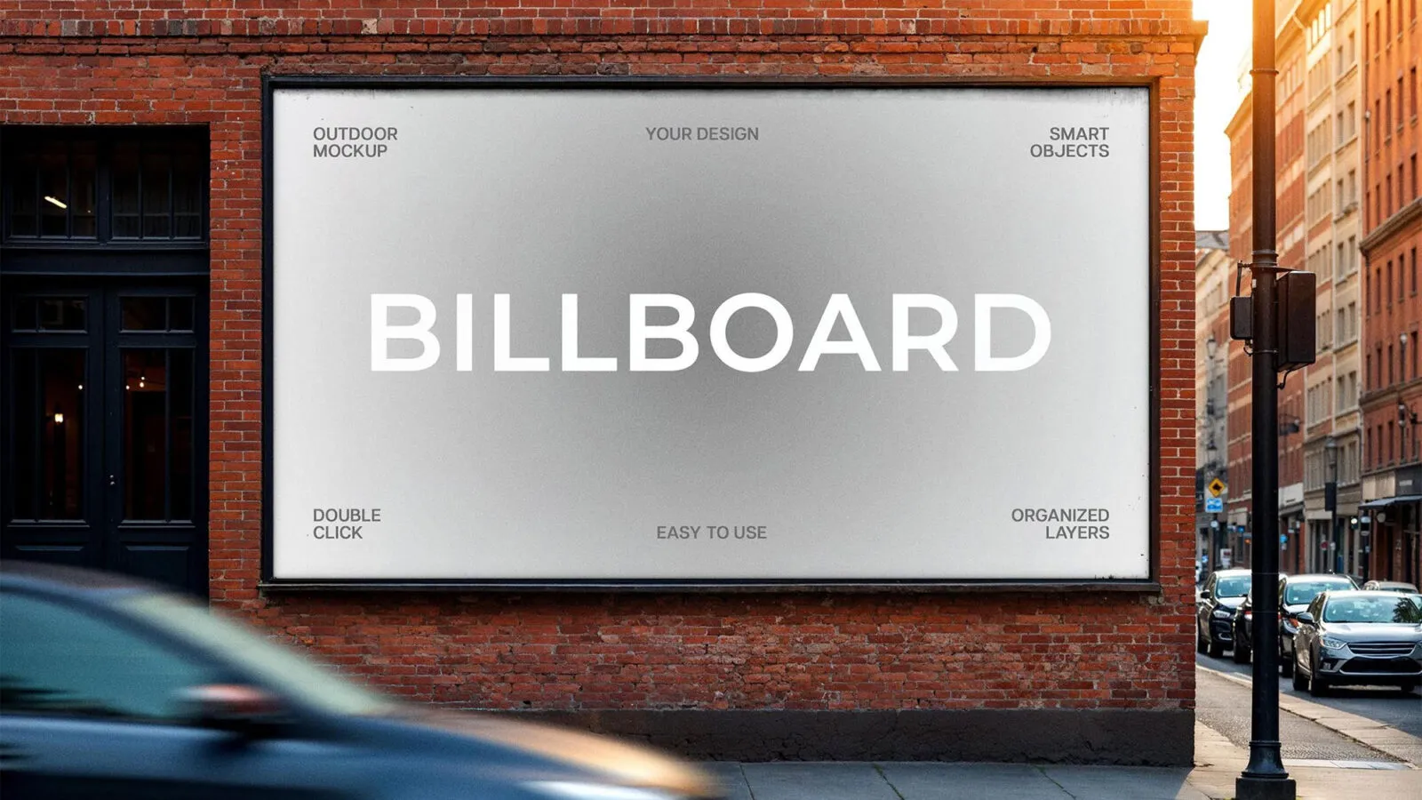 The Street Corner City Billboard Mockup offers a realistic setting for displaying your brand in an urban environment. This PSD file places your advertisement on a large billboard within a busy city scene, featuring authentic architectural elements and natural daylight. You can easily apply your design using smart object layers, ensuring a smooth and professional presentation that highlights your brand’s visibility in a metropolitan area.