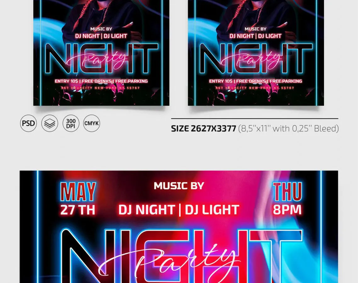 Stunning Modern Night Club Flyer Template is designed for those planning an exciting event. Its eye-catching design features a contemporary neon style that can attract a wide audience. This template is a great option for creating promotional materials that stand out.