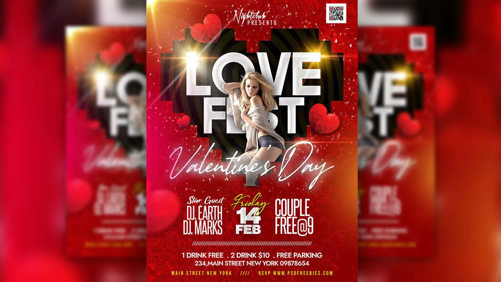 Sweet Valentines Day Fest Party Flyer Template