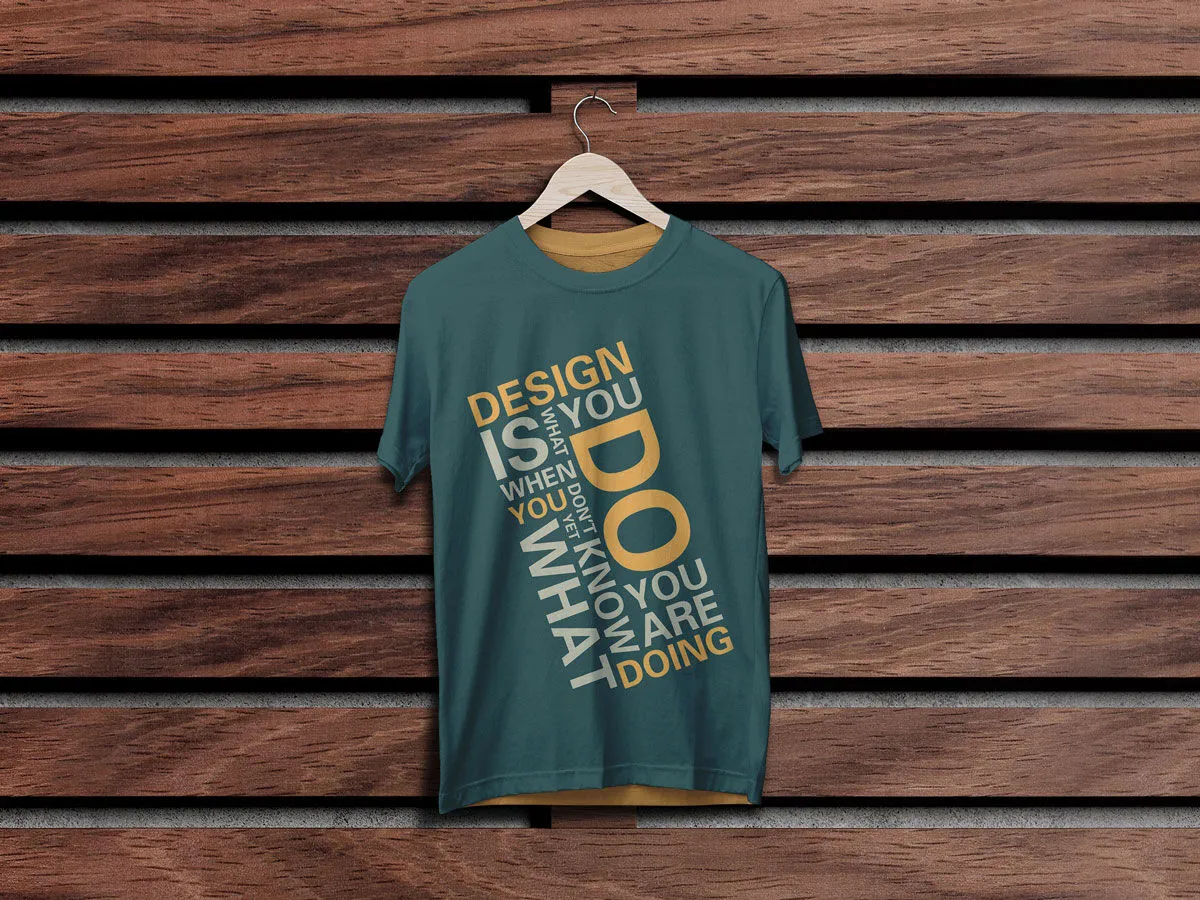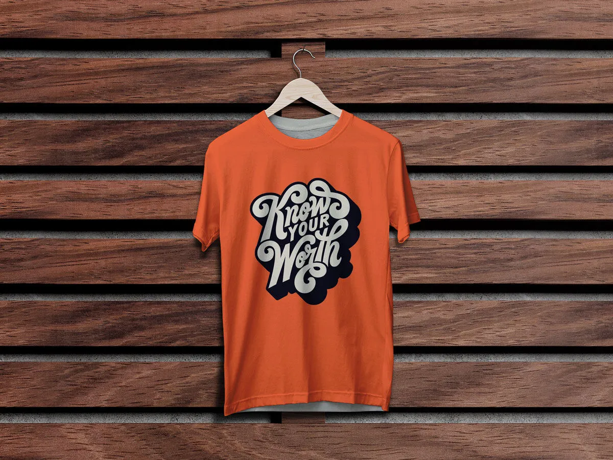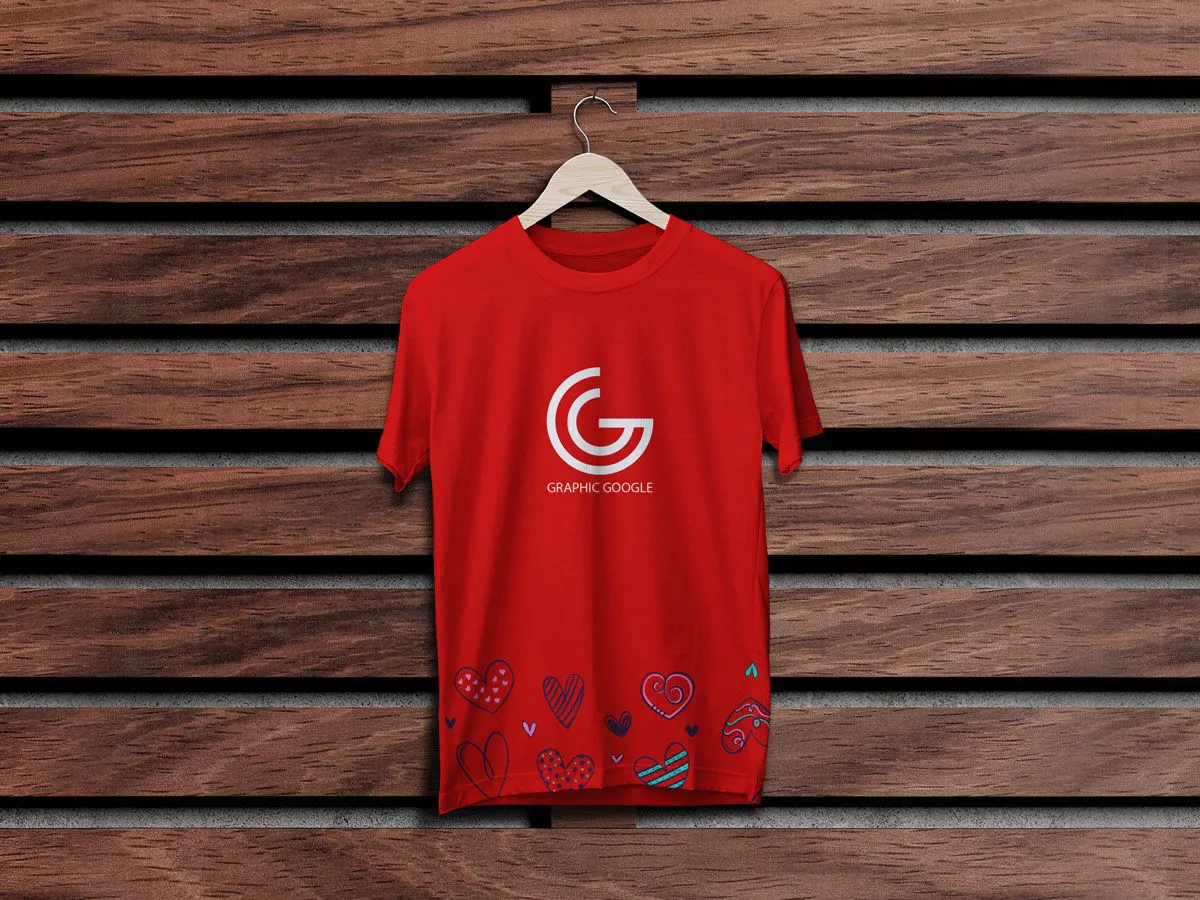It is a created by Graphic Google for you. As you can see in the photo there is a hanging on a wooden, metallic hanger on some wooden wall in a front view. You are able to replace your own design on the front side of the T-shirt and change the color of both out and inner sides of it.
