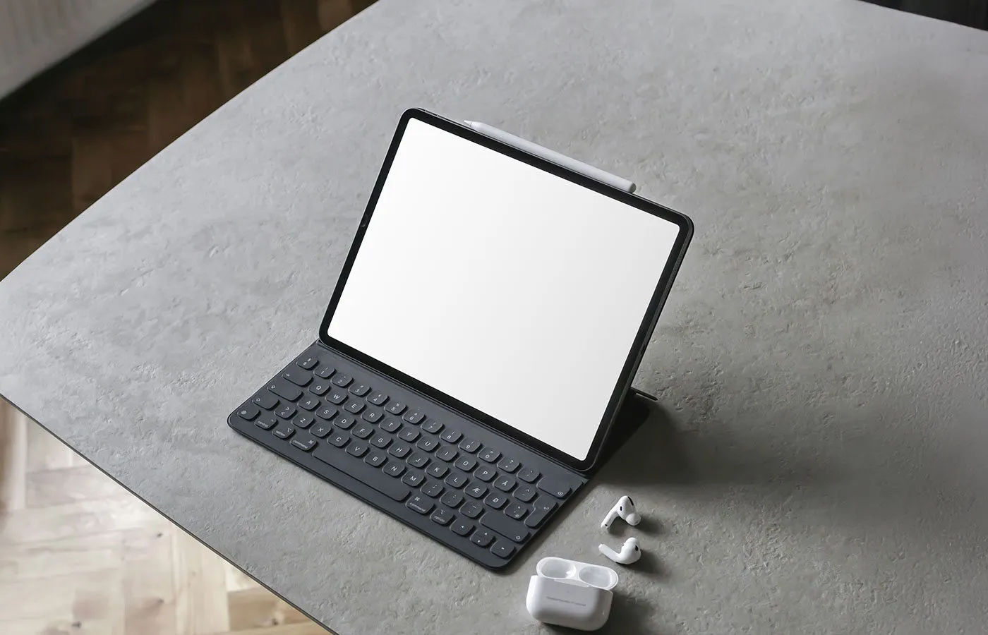 The Tablet with Keyboard Mockup allows you to present your digital designs with a touch of elegance. This high-resolution mockup features a sleek tablet combined with a modern keyboard, making it perfect for displaying UI/UX designs, website concepts, or branding presentations.