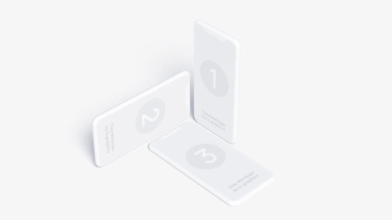 There are three iPhones available in this file. Each one is presented in a distinctive position. Although each one has its exclusive style, all of the screens are available for displaying your graphics. You can change the color of these clay smartphones and the background color. Adjusting shadows is also an option.