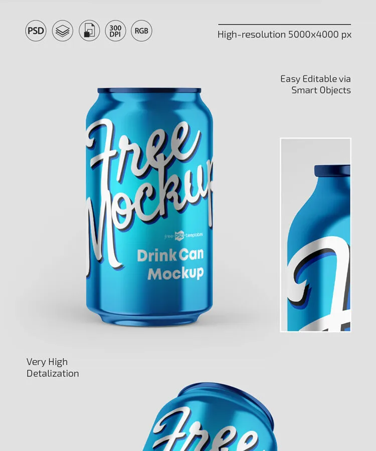 In case you need a set of well-designed for your upcoming project, we have a recommendation for you. These three mockups can be used for soft drinks, beer, energy drinks, etc. These mockups come with an impressive resolution of 5000 x 4000 px, which guarantees you high-end results.
