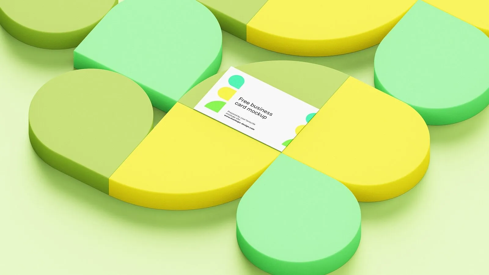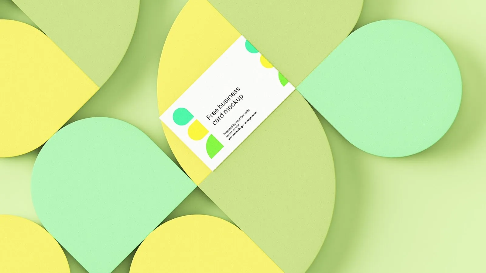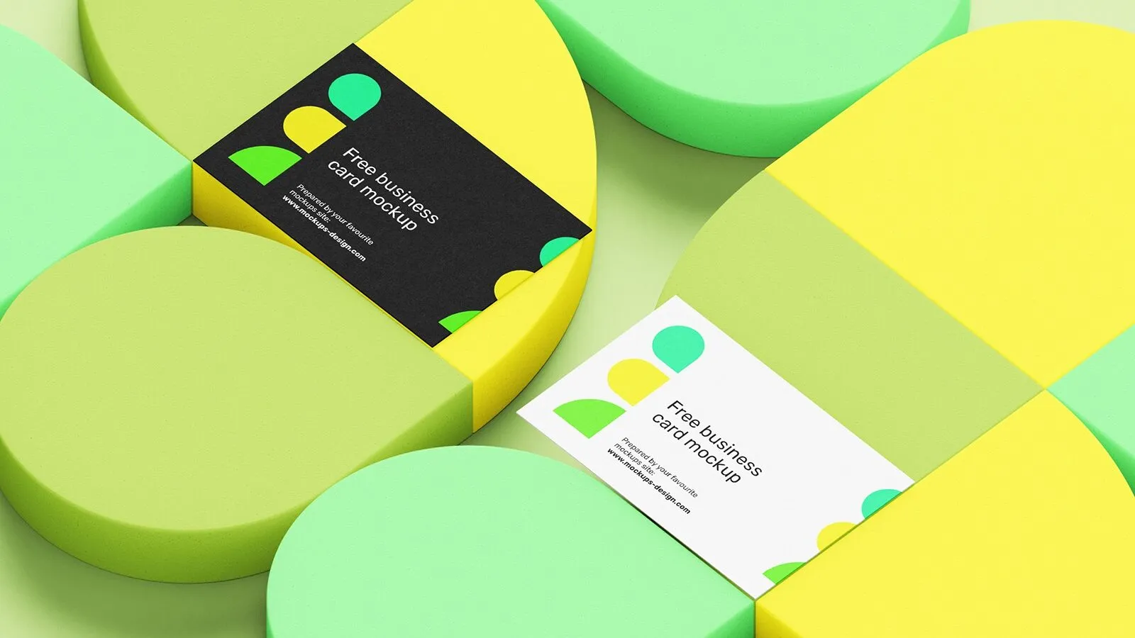 Top and Perspective View of 5 Business Card Mockups on Geometric Background