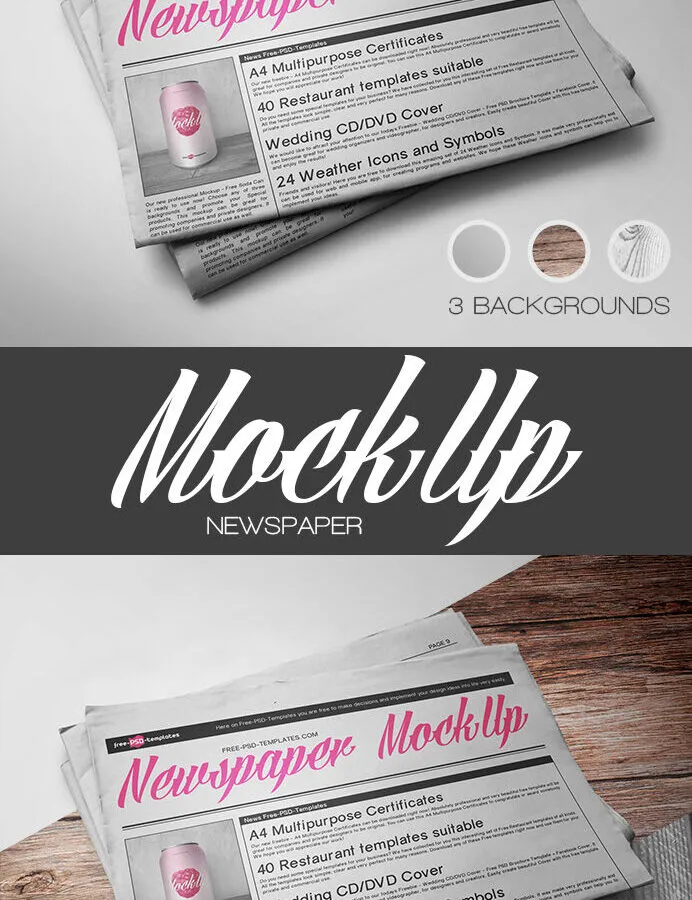 Do you desire to leave a good impression on your target audience? can help you in offering a freebie to present your design realistically. Here is a top-side view of a half-folded newspaper on different backgrounds to implement your creative ideas about your work and enjoy results.