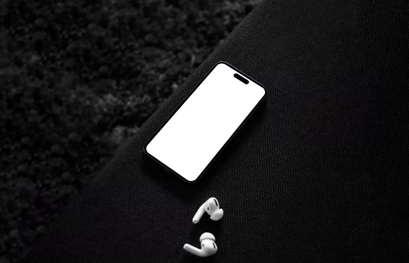 Top Sight of iPhone 14 Pro Mockup on Sofa