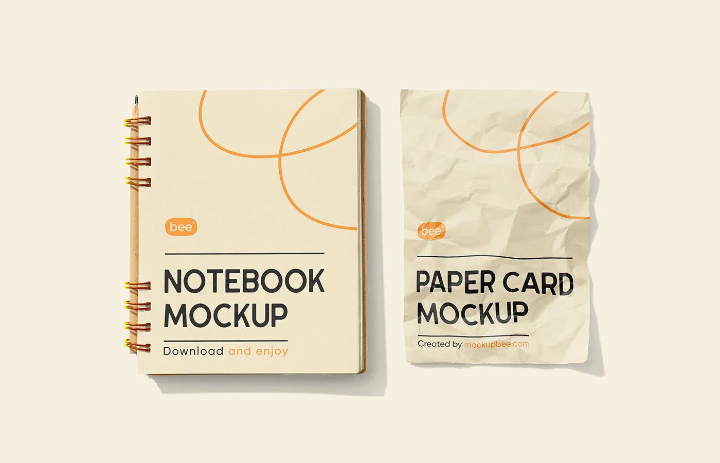 If you like to use a distinct layout to present your new layout, this can catch your attention. This design tool showcases a notebook and a paper card in a simple background with a minimal and modern vibe.