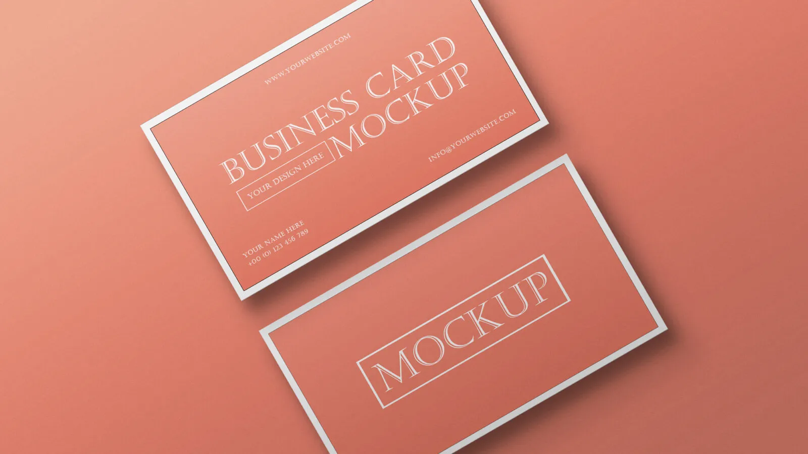 Top View 2 Business Cards Diagonally Arranged on Floor Mockup