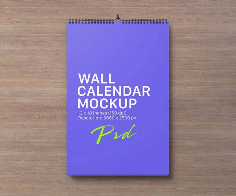 Discover the Top View of 2 Mockups of a Portrait and a Landscape Wall Calendars, perfect for showcasing your design ideas. This product includes two free wall calendar mockups, offering a realistic top view of both a portrait and a landscape calendar. These mockups provide a versatile way to present your work to clients or for personal projects.