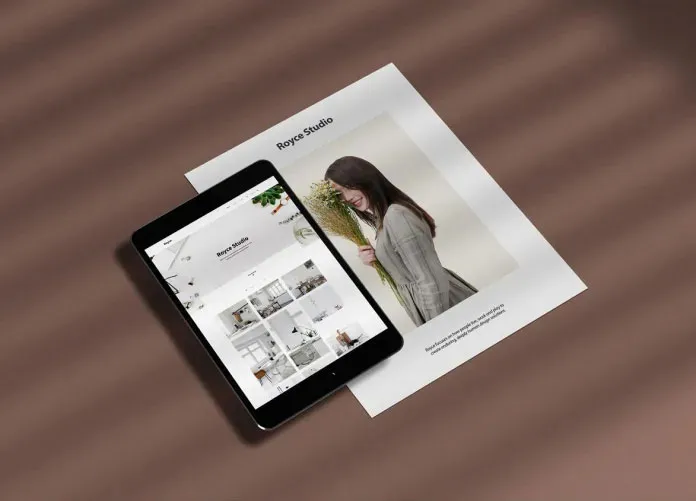 Top View of an iPad With Paper and Overlay Shadow Mockup