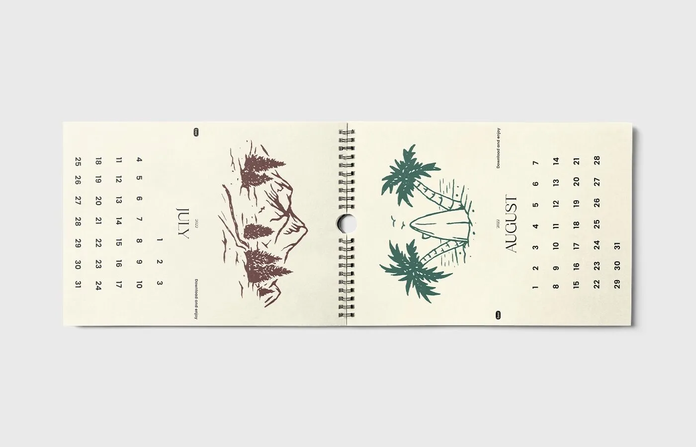 You know that all people employ calendars in their offices, rooms, and other sites to exploit or inform us about reaching affairs. So, here we offer you a lying open from a top view to complete the desired production of your calendar covers. This mockup helps you memorize your important event or the like.