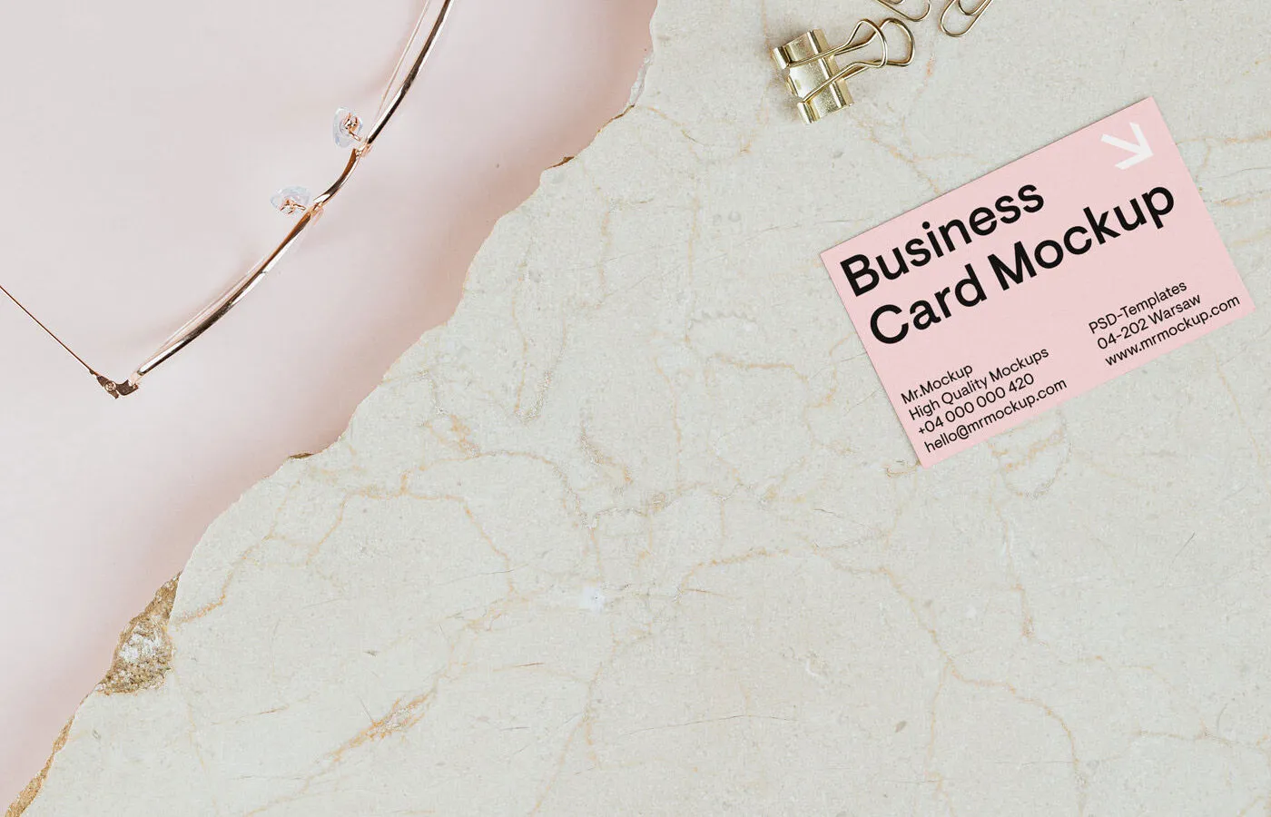 Our freebie today features a stunning design that showcases your business card in the most beautiful way possible against a luxurious marble background with some paper clips and a pair of glasses. You can deliver this to your customers and potential partners and immediately impact your brand’s quality.