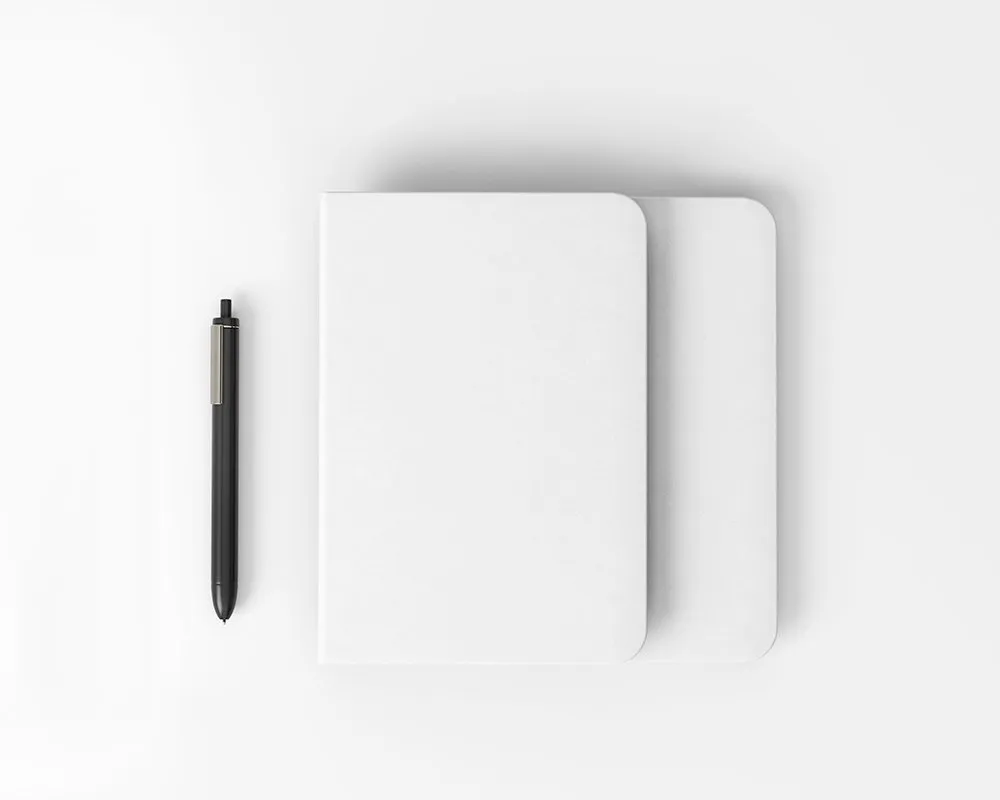Top View of Notebook Mockup with Pen