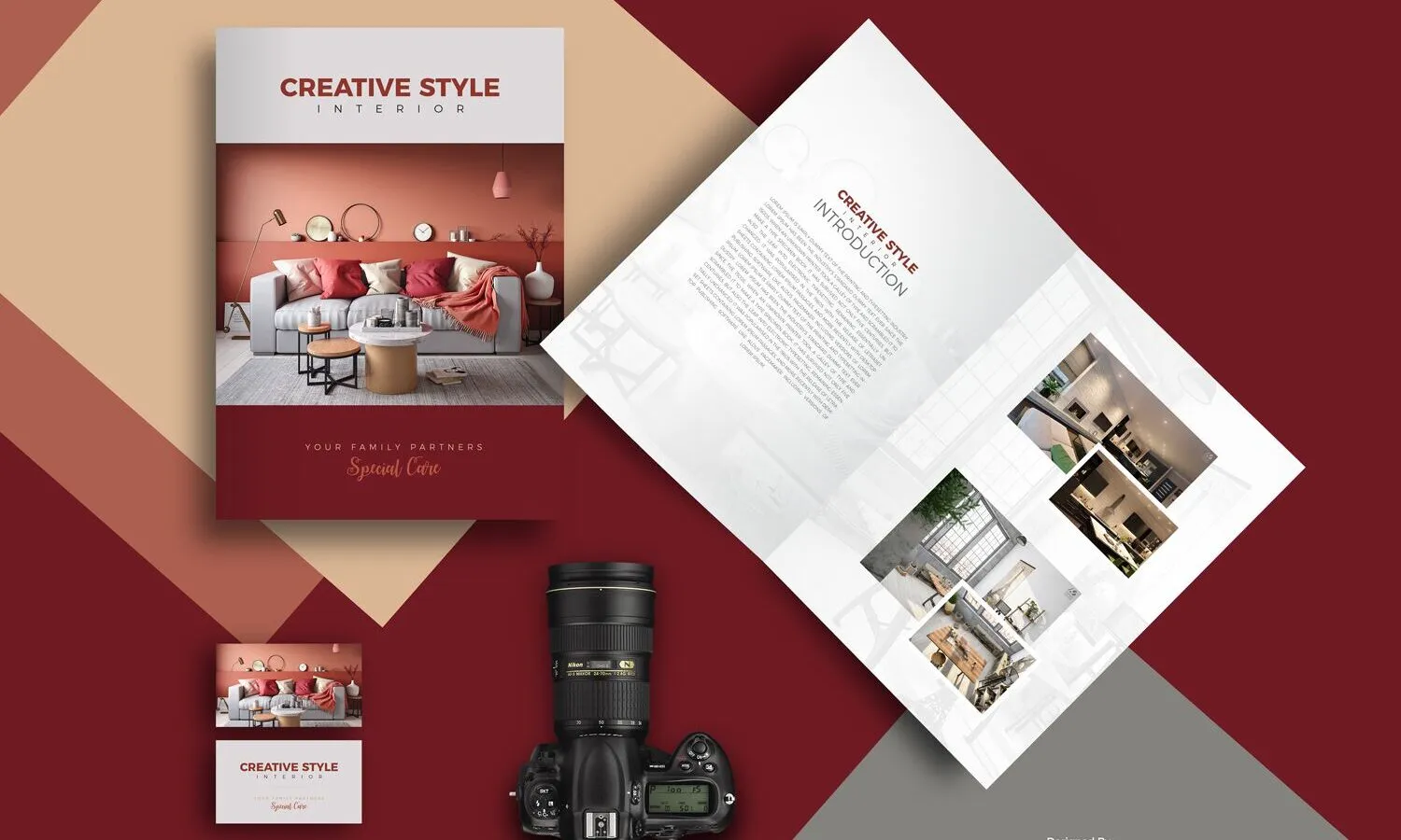 Just take a moment and look at this gorgeous set, would you? It’s so perfect in any way that you can hardly find anything more to ask for. It features a pair of brochures and also another pair of business cards placed together along with a camera right there at the bottom, I mean how brilliant is that?