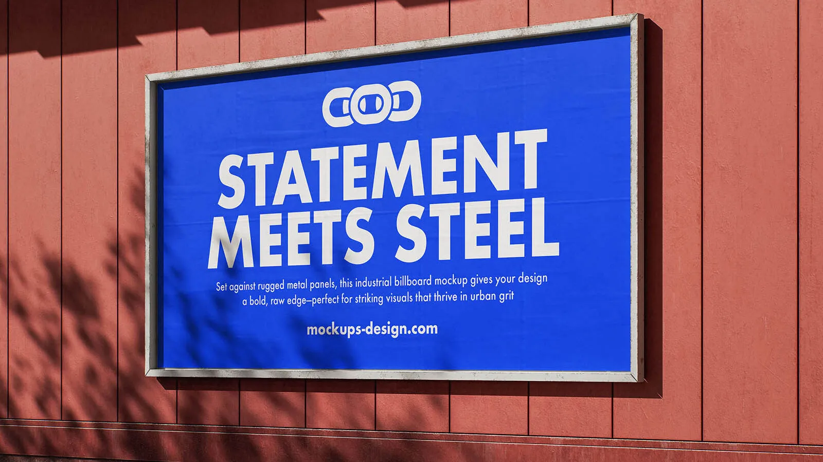 Enhance your design projects with the Two Industrial Billboard Mockups. These mockups showcase an outdoor billboard set against a backdrop of sturdy metal panel cladding, giving your work an industrial touch. You will receive two PSD files offering different perspectives, ideal for showcasing event posters, advertising campaigns, or public messages in a striking way.