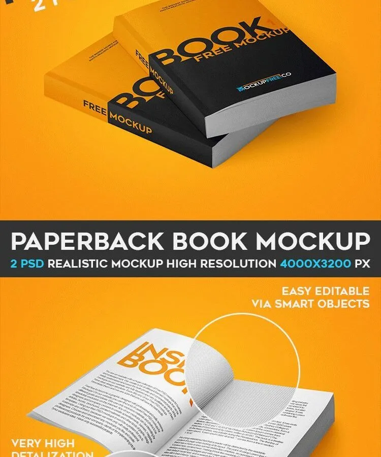 Choosing the right colors, fonts, images, and cover designs is essential for your book’s success. These two mockups of closed and opened paperback books are designed to help you visualize and refine both your cover and inner book design. They offer a versatile way to work on different parts of your book simultaneously, showcasing thick paperback books from various perspectives and angles.