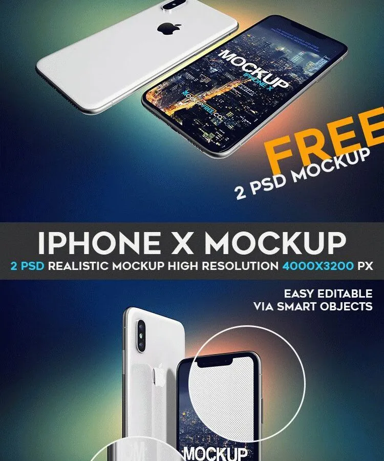 These two mockups of the iPhone X offer a professional way to present your projects efficiently. Ideal for showcasing iOS mobile apps, web designs, or other digital content, this set includes two distinct scenes. Each scene is provided in a separate PSD file, featuring floating iPhones that display both the front and back of the iPhone X for a comprehensive presentation.