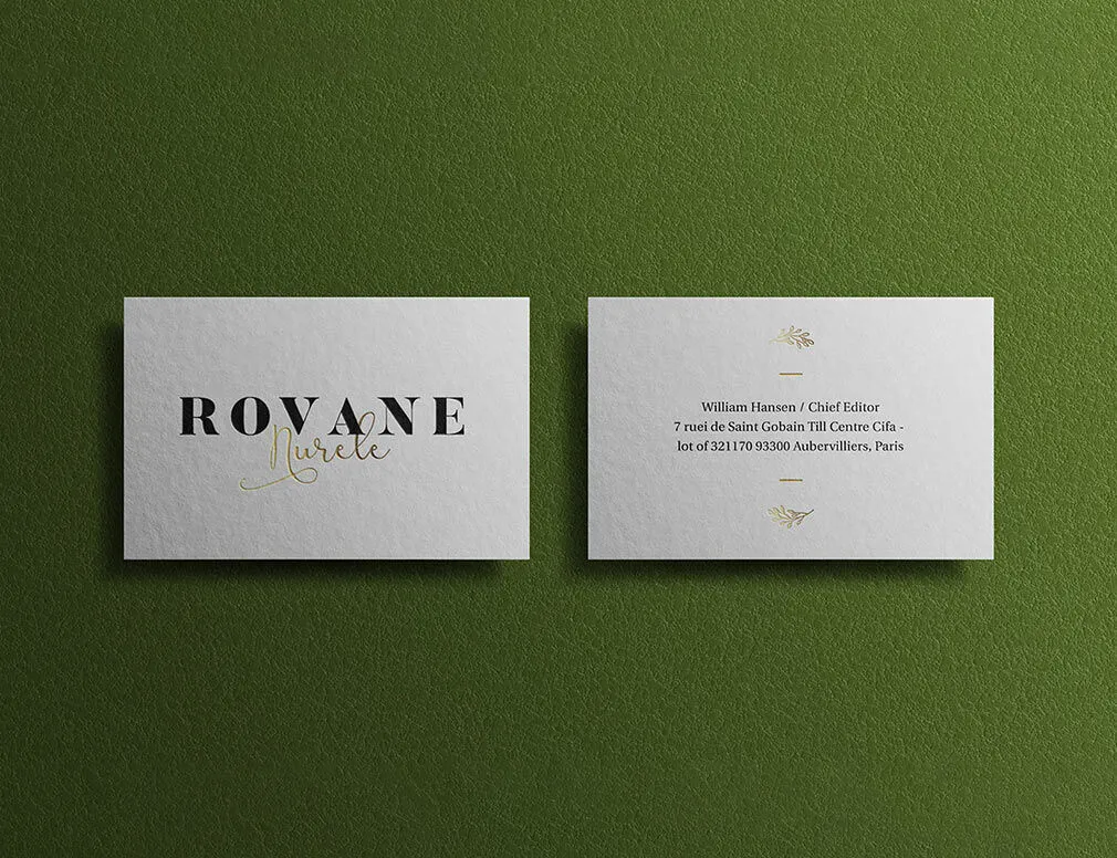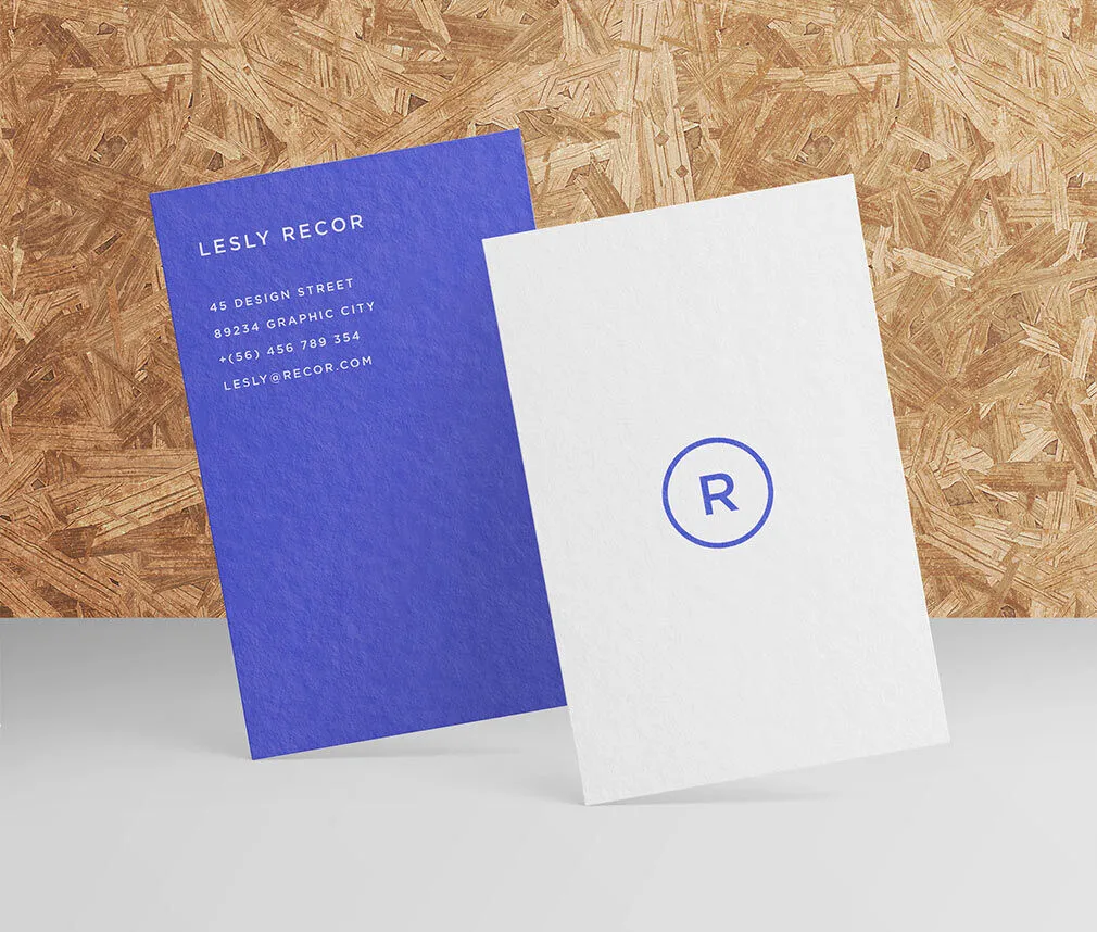 This product offers two mockups to help display your business card designs effectively. Each file includes two photorealistic card models. In one file, the cards are shown from an overhead perspective, laid flat on a surface with subtle shadows to enhance their appearance.