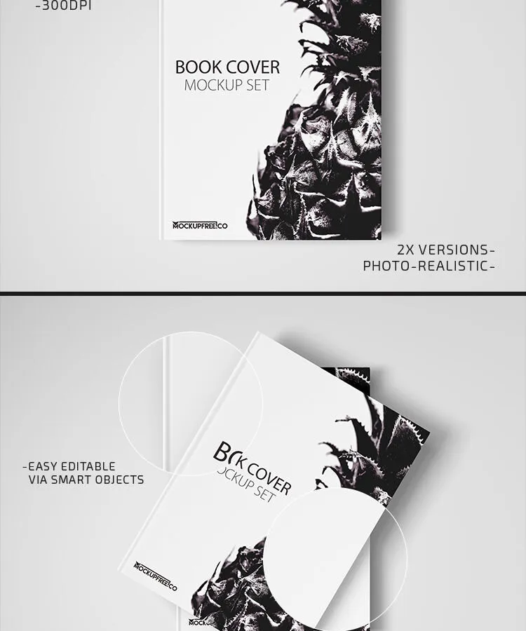 These two photorealistic mockups are designed to help you present your book cover designs effectively. Both mockups provide an overhead view, offering a clear perspective of hardcover books.