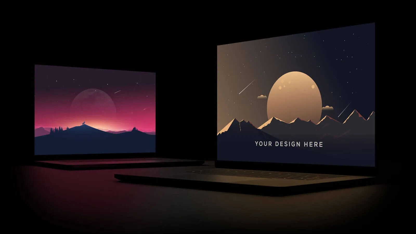 You should share all your designs in the best way possible. offers you this eye-catching mockup. This mockup includes two notebook laptops, sitting in the dark, waiting for you to use them for showcasing your UI design, website, ads, online courses and application designs, and other things.