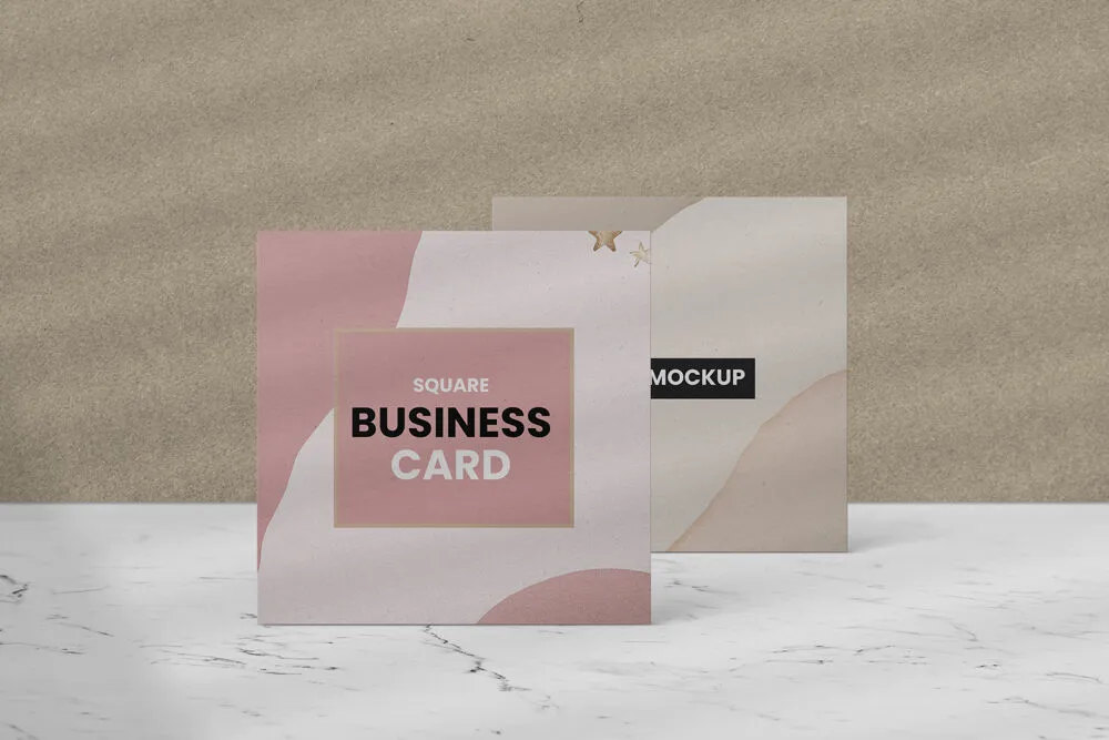 Two Standing Square Business Cards in Front of Each Other Mockup
