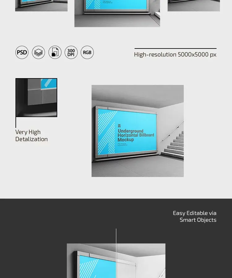 Enhance your brand’s visibility in busy transit locations with the Underground Horizontal Billboard Mockup. These professional PSD files showcase a wide-format advertisement placed realistically on a wall beside genuine stairs. You can easily insert your design using smart object layers, ensuring a smooth and eye-catching presentation that grabs the attention of commuters.