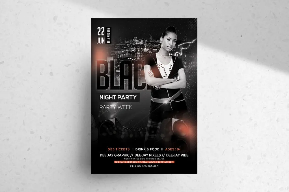 The Urban Party Night Flyer Template is designed to help you effectively promote your event. It features a nighttime city background and allows you to include a picture of your DJ or special guest. Lens flares add a stylish touch to the overall design, making your flyer stand out.