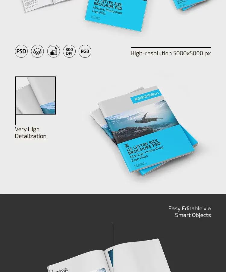 Showcase your brochure designs in a polished, professional style with this free US letter-size ! This bundle offers three high‑resolution PSD scenes showing a standard brochure, from a closed view to an open, two‑page spread, giving you versatile angles for maximum presentation impact.