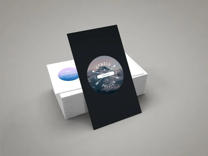 This mockup allows you to display both vertical and horizontal business cards in a single frame, with a primary focus on the vertical card. The simple setting ensures that the business cards remain the focal point.