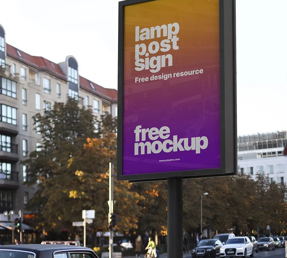 Vertical Lightbox Signboard on the Sidewalk at 34 Angle View Mockup