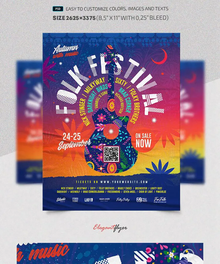 How do you prefer to spend the build-up to your next music event with some awesome patterns, and not scratching your head for compelling ways to promote it? Then you better click download and leave it to our vintage festive folk fest flyer template. Henceforward, prepare amazing invites with a romantic sunset color of this artwork not more than a few minutes long.