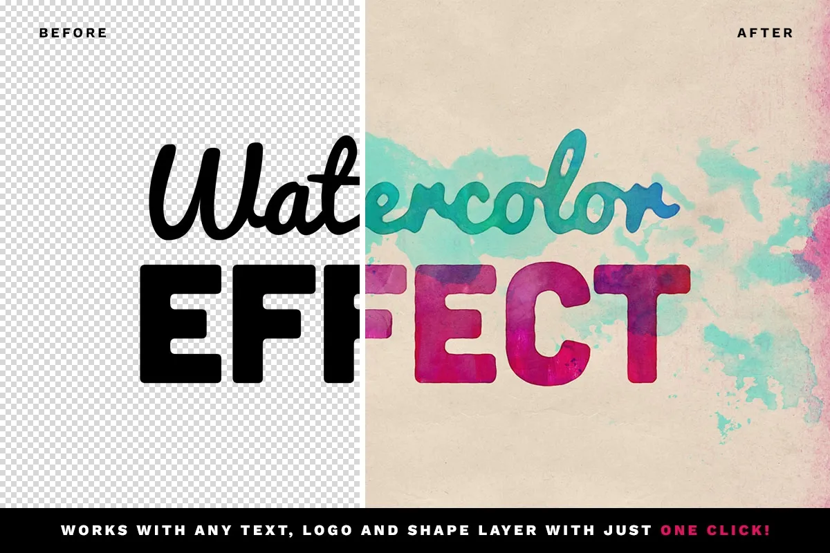 These effects provide a vibrant and colorful look that attracts attention to your work. With the help of smart objects in Photoshop, applying these watercolor effects is simple and straightforward. Download this free resource to effortlessly enhance your designs with a fresh and artistic flair.