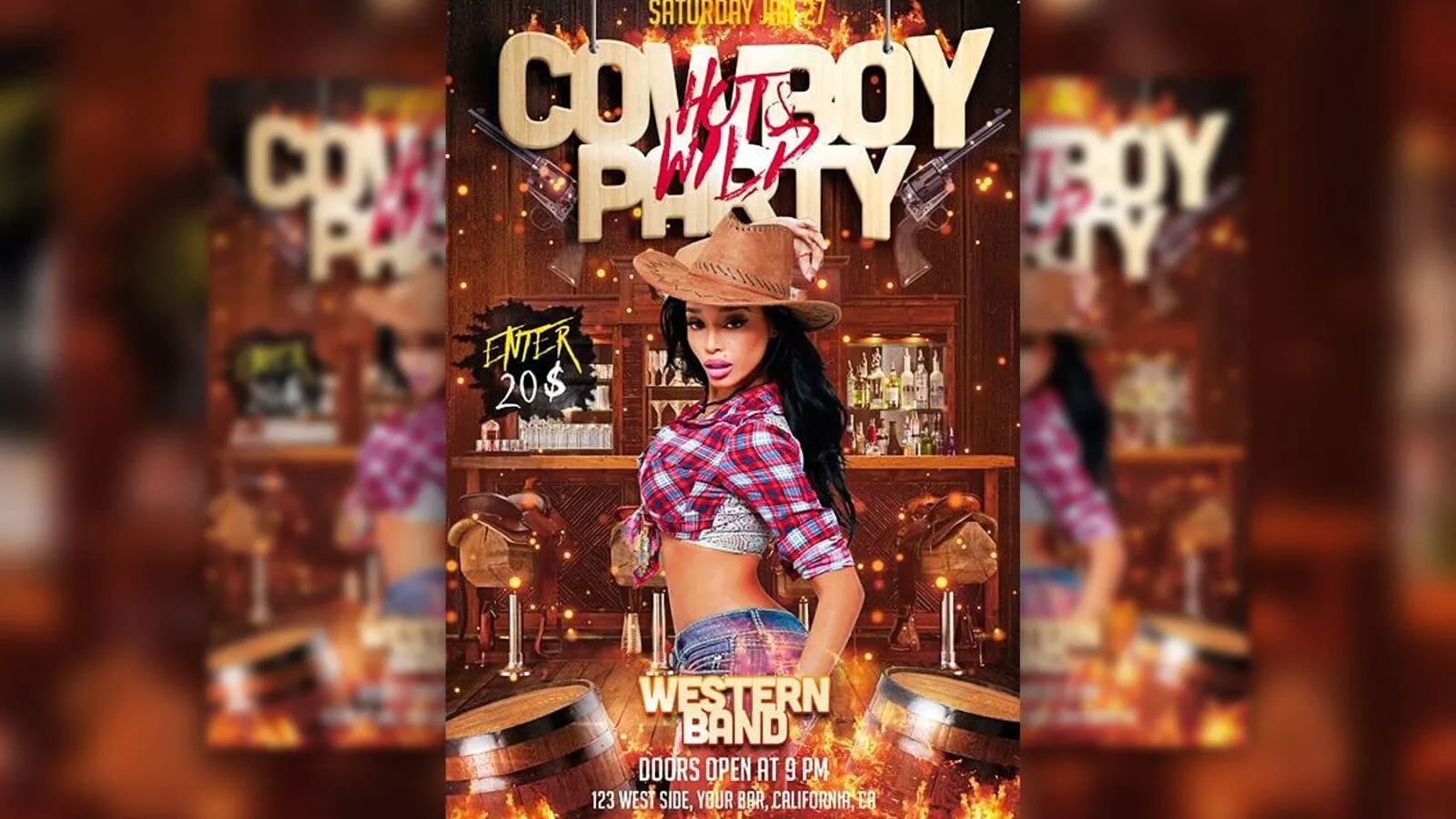 Raise your hands if you’re into cowboys and Western-themed movies and parties. Here comes a terrific cowboy Western through which you can promote your Western-themed birthday party or any other type of night party at their best.