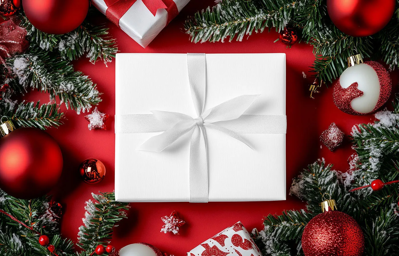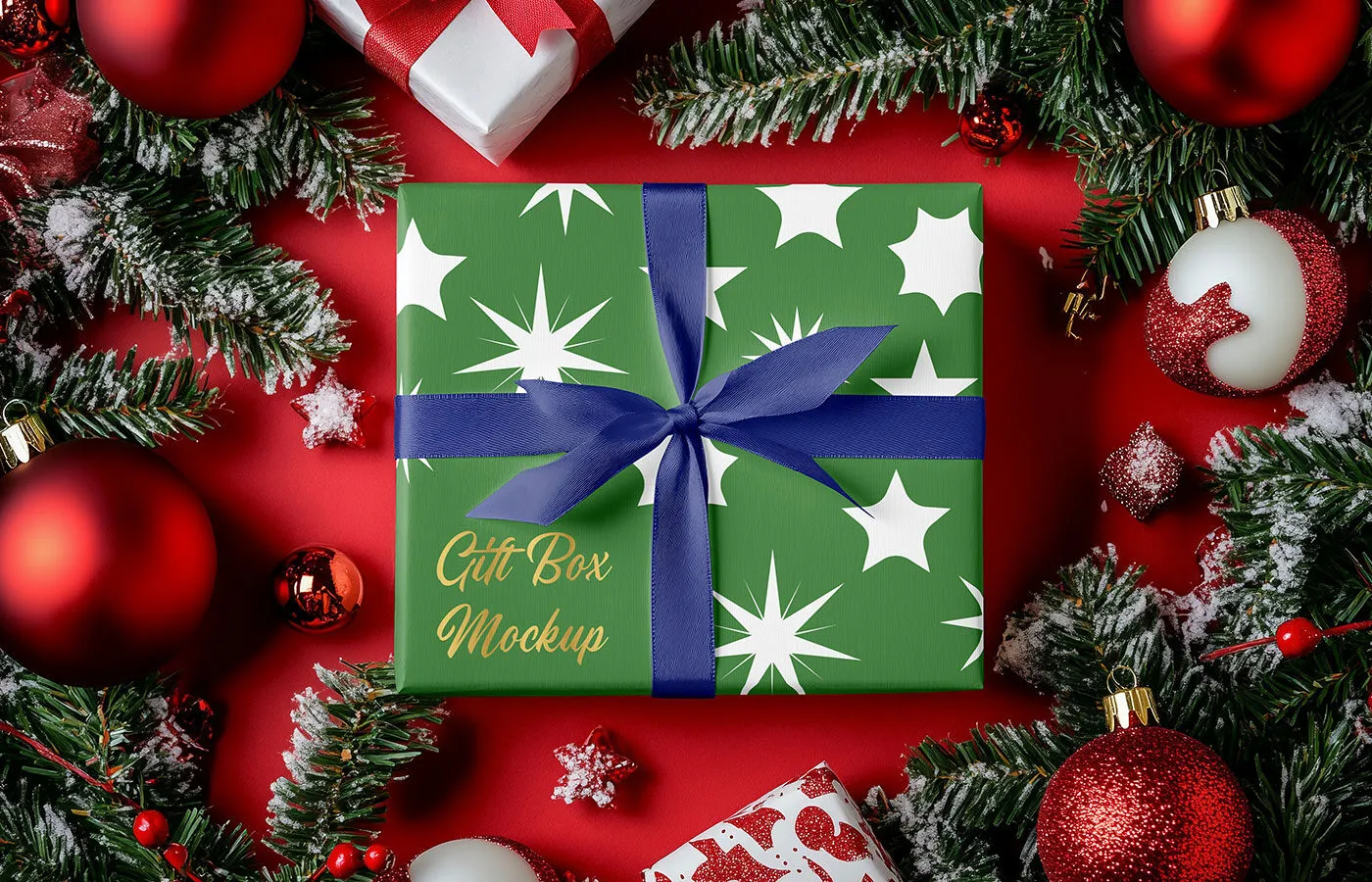 Wrapped Christmas Gift Box Mockup